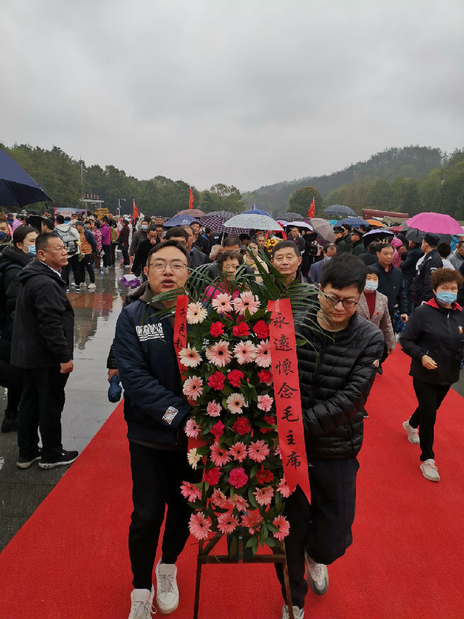 首先大家來(lái)到毛澤東銅像廣場(chǎng),整個(gè)廣場(chǎng)大氣雄偉、莊嚴肅穆,周?chē)嗨纱渲裱谟?,群山拱護。黨員們緩步護送著(zhù)花籃走向毛澤東銅像。登上臺階,駐足凝視后,上前整理花籃上的緞帶,深深三鞠躬,并繞行一周深情瞻仰。隨后,所有人參觀(guān)了毛澤東同志故居、紀念館,認真聽(tīng)取介紹,觀(guān)看一件件展陳。